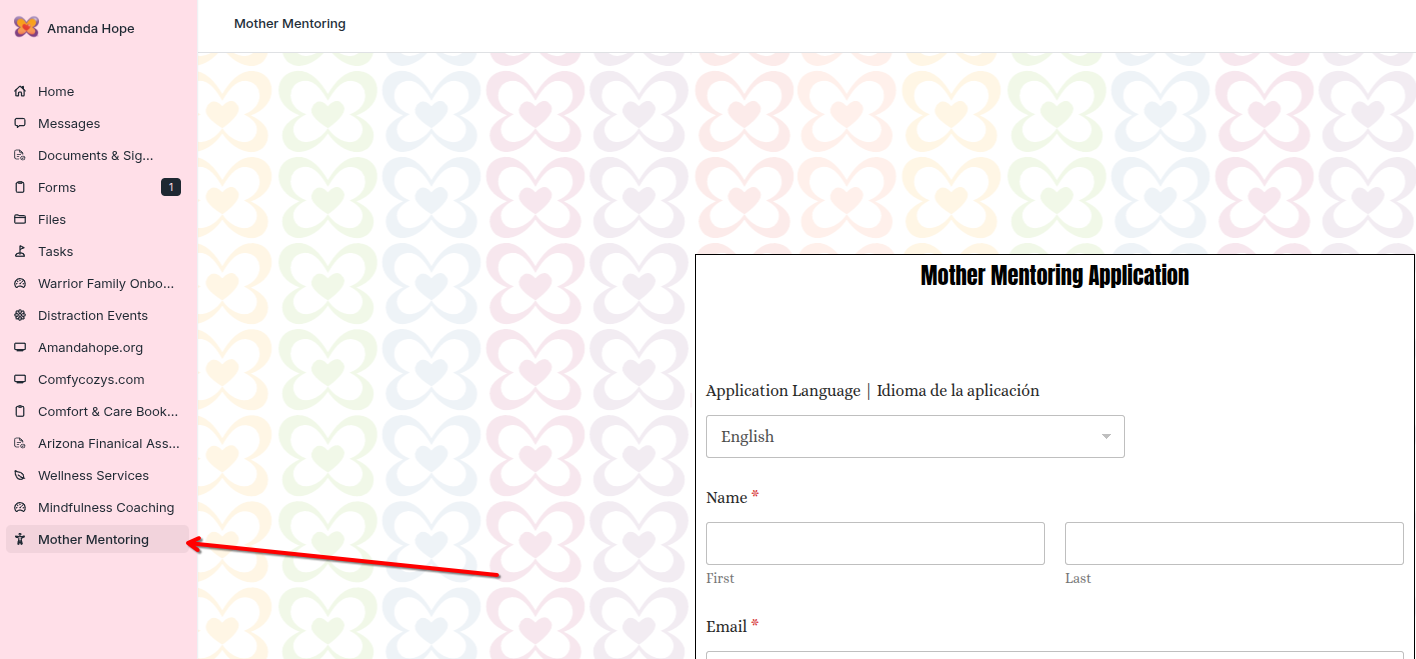 Step 3: Once the onboarding form is completed, look for Mother Mentoring on your account panel.